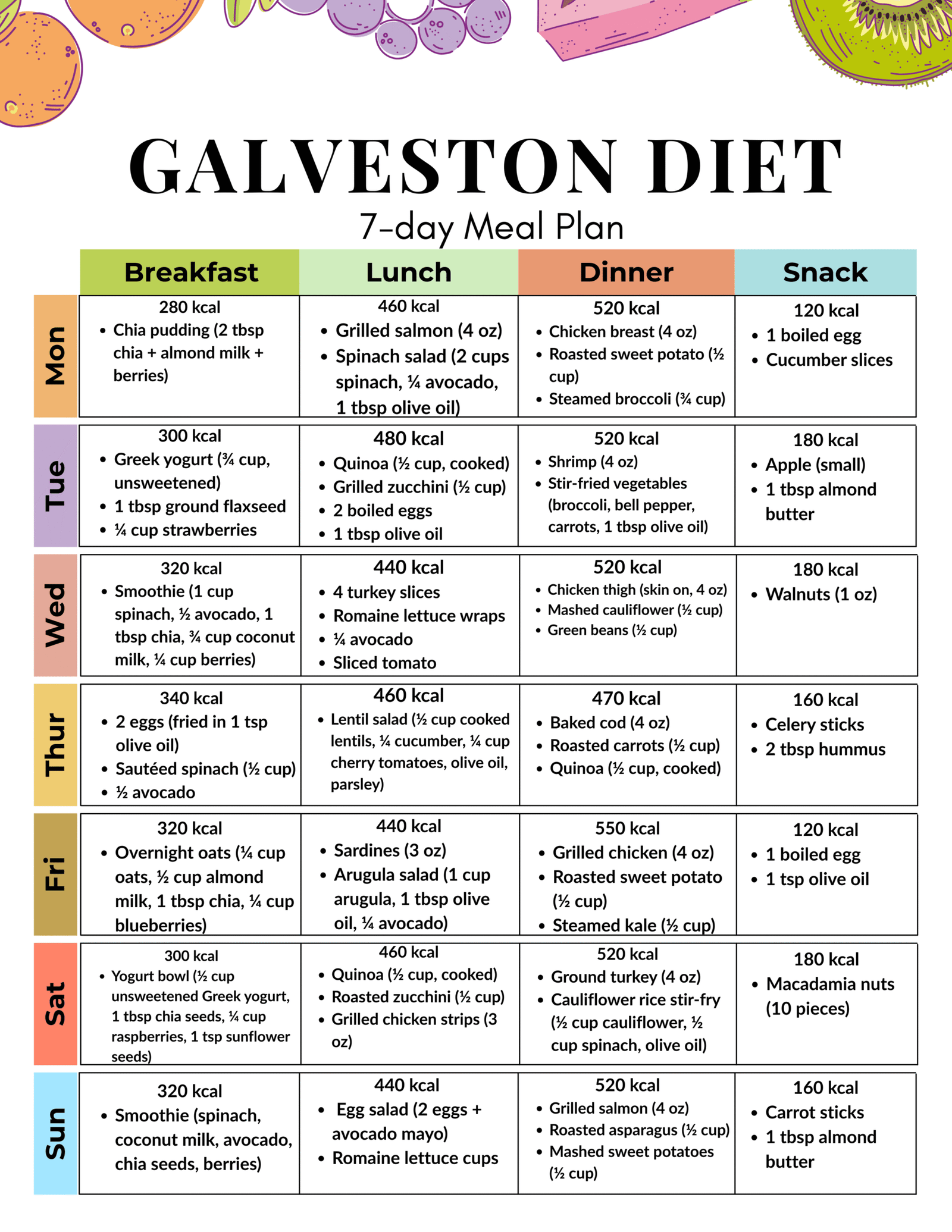 7-Day Galveston Diet Meal Plan