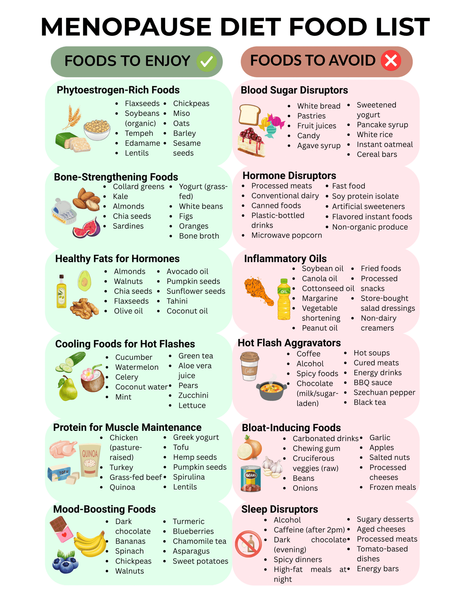 Menopause Diet Food List with a gynecologist-reviewed plan for hormone balance. Cools hot flashes and manages menopausal symptoms. US Letter & A4 sizes.